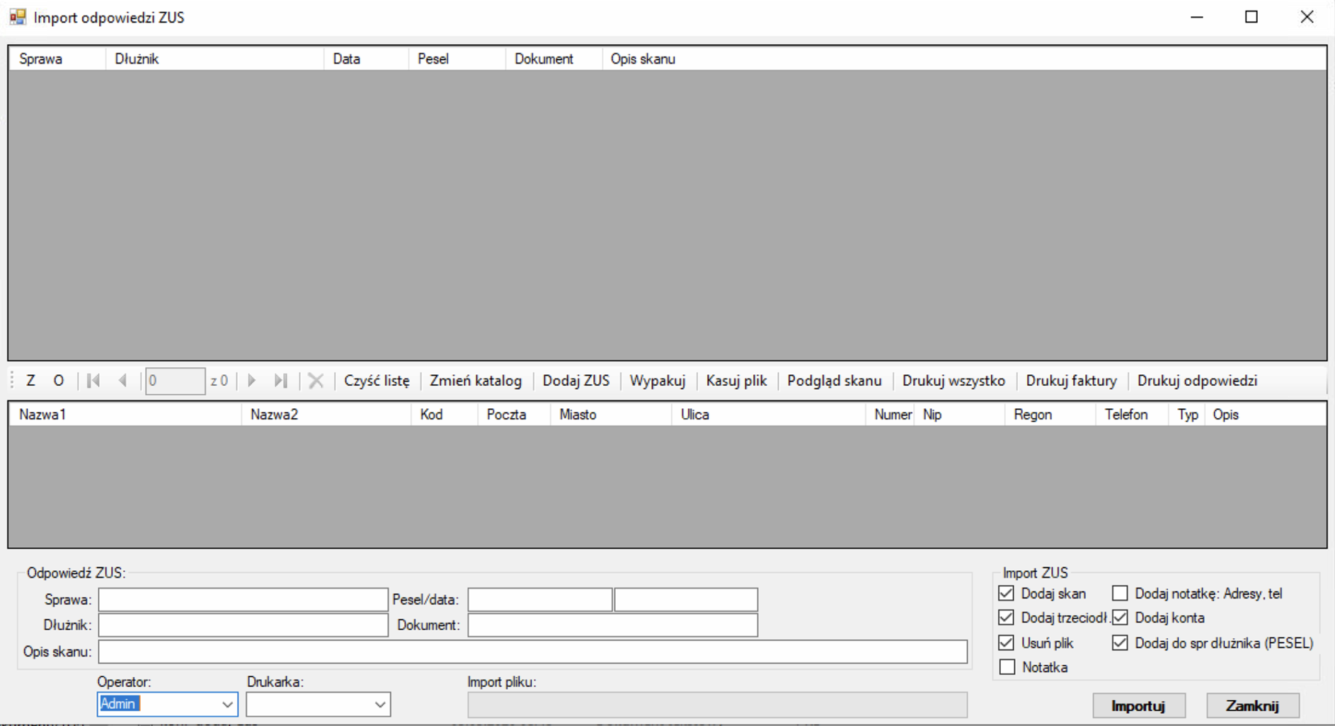 Sprawne dodawanie odpowiedzi oraz faktur z platformy PUE-ZUS, program automatycznie dodaje trzeciodłużników do spraw. Dodatkowym atutem jest możliwość drukowania odpowiedzi i faktur oraz dodanie notatki z adresem wsakaznym na odpowiedzi z ZUS.