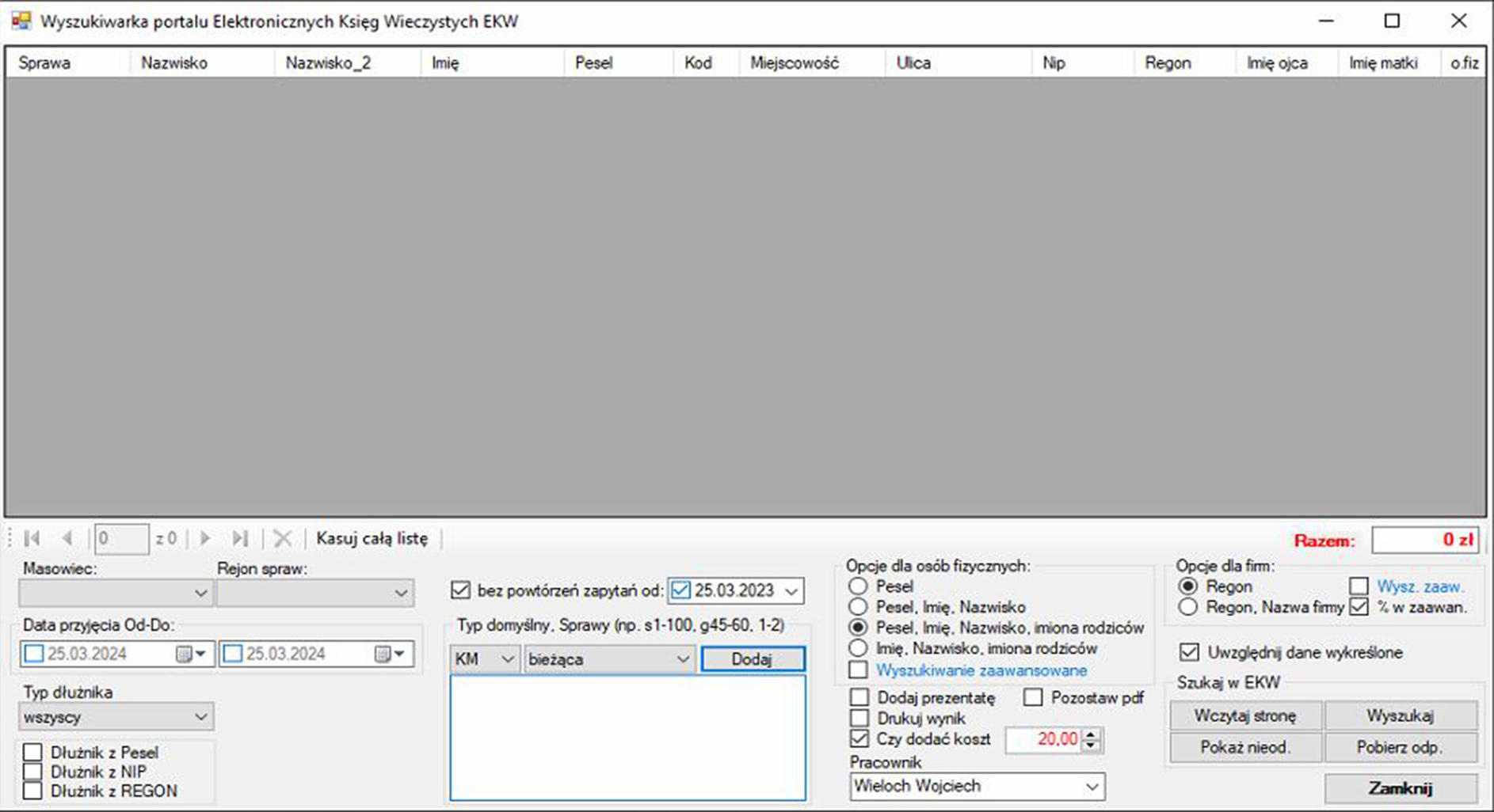 - Automatyczne nabicie kosztu za zapytanie do EKW w sprawie