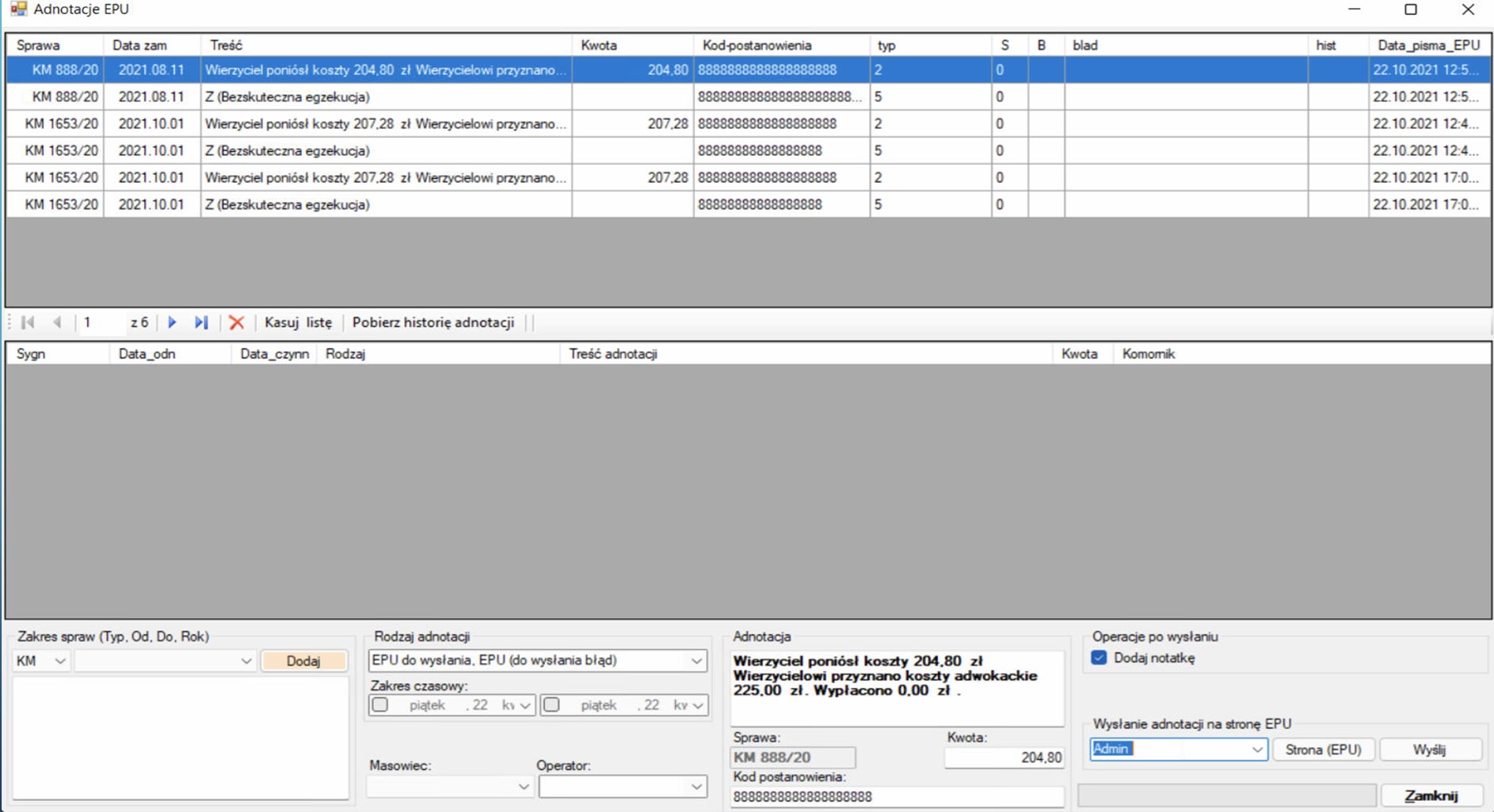 - Program pobiera historię adnotacji i zapisuje ją do sprawy